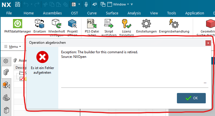 Exception: The builder for this command is retired Source: NXOpen